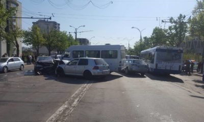 ŞASE PERSOANE RĂNITE AU FOST TRANSPORTATE LA SPITAL, DUPĂ CE TREI MAȘINI, UN MICROBUZ ŞI UN TROLEIBUZ, S-AU TAMPONAT, ÎN SECTORUL RÂȘCANI AL CAPITALEI