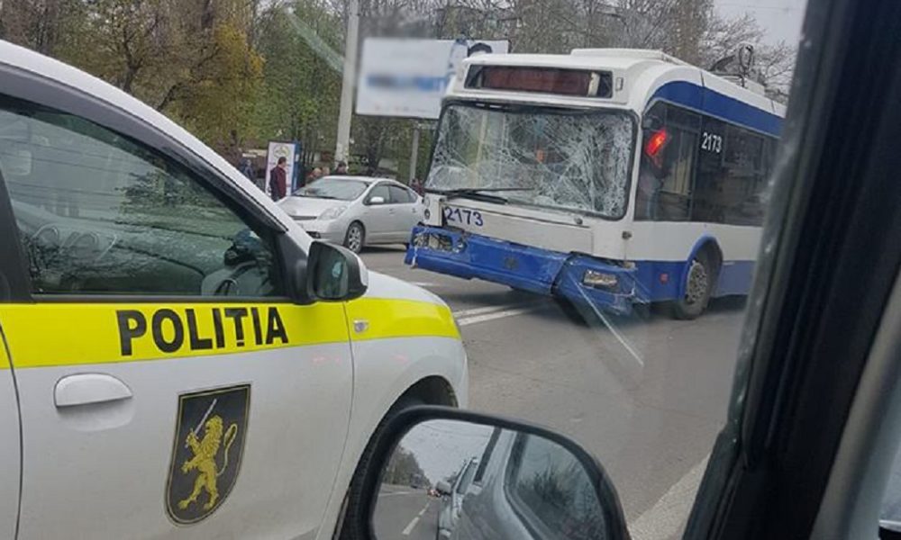 Accident rutier la o intersecție din orașul Bălți. Un troleibuz cu pasageri s-a ciocnit într-un autocamion de model Mercedes. Din fericire nimeni nu a avut de...