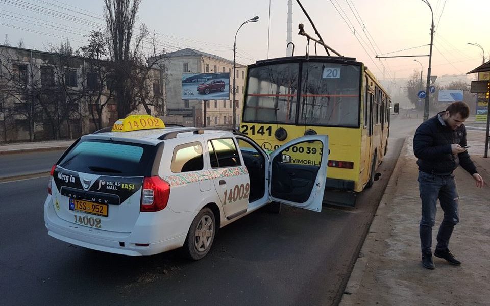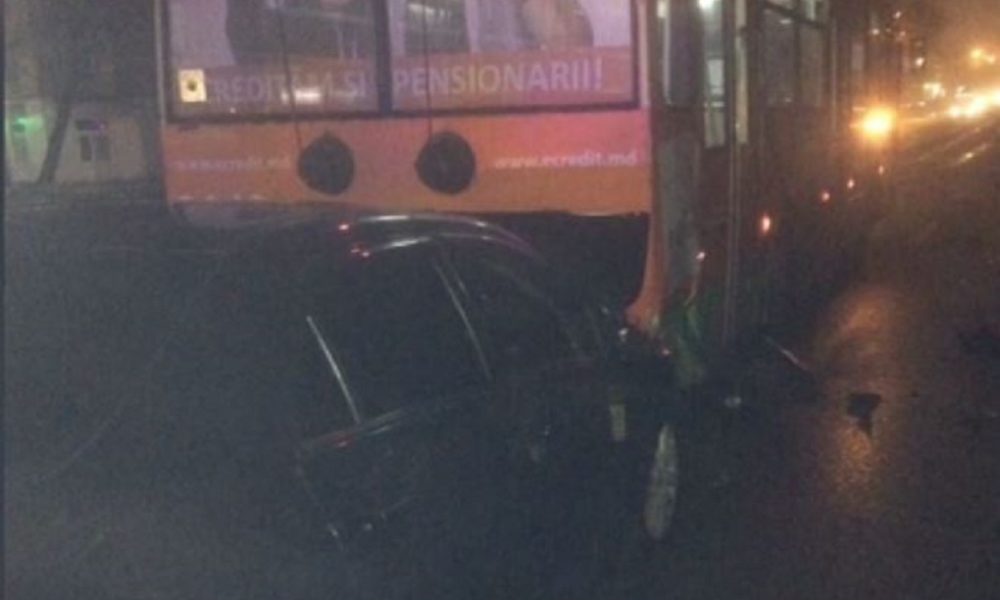 O maşină a intrat în plin într-un troleibuz,n dimineața de trei februarie, lângă gara auto din Chişinău.