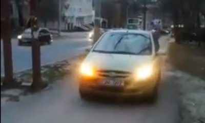 Un șofer a fost surprins cum se deplasează cu automobilul pe trotuar. Imaginile de la locul incidentului au fost plasate pe o rețea de socializare.