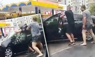 Imagini cu un șofer care merge cu ușa deschisă după ce iese de la o benzinărie au devenit virale pe Facebook.