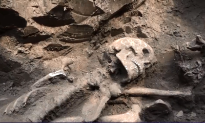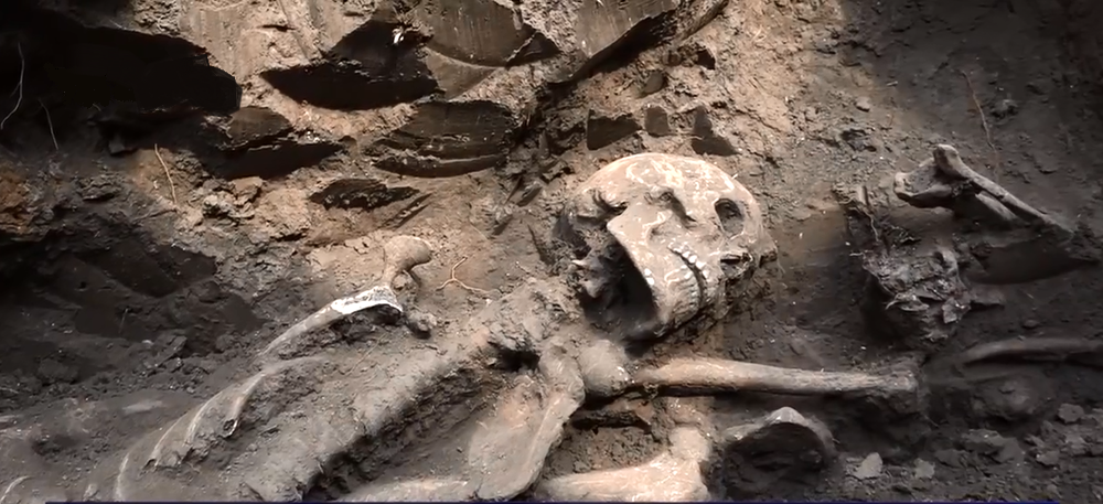 În timp ce săpa o gură de canalizare în curte, un bărbat a găsit trei schelete umane.