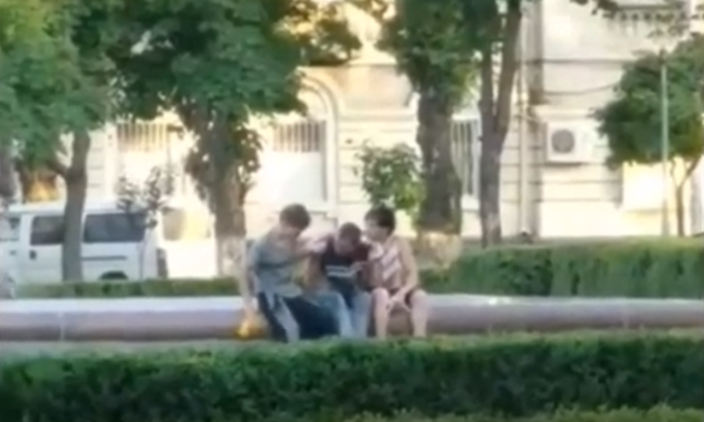 Trei minori, surprinși cum inhalează clei dintr-un pachet din plastic, lângă gara feroviară din Chișinău.