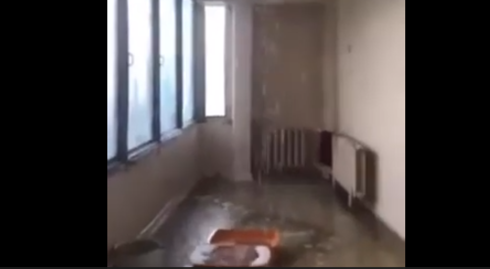 A plouat cu găleată într-un spital din orașul Bender. Tavanul clădirii se pare că a cedat și a dat frâu liber ploii. Astfel, pe podea s-a...