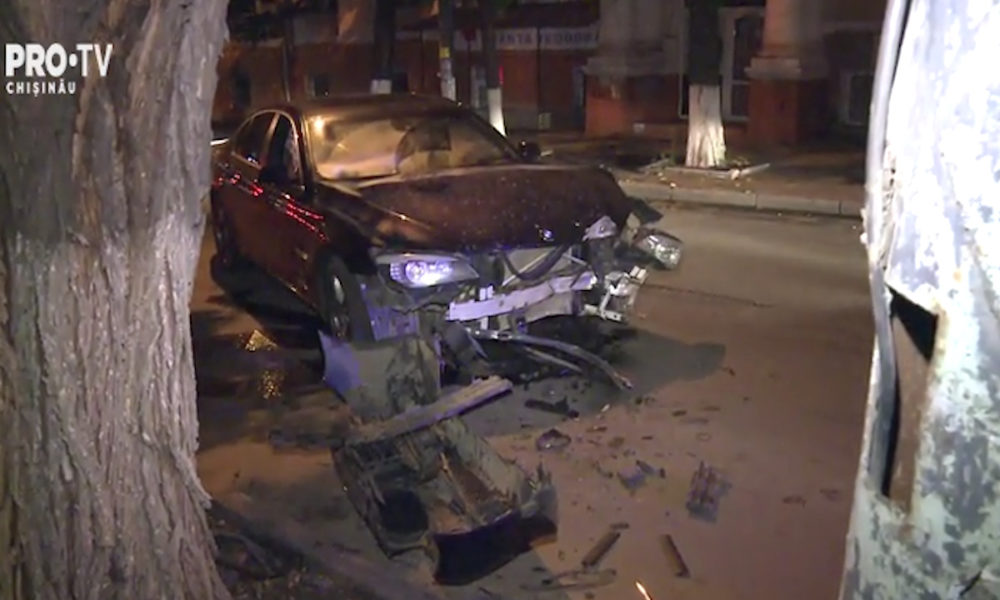 Șoferul automobilului nu a pățit nimic, însă mașina a fost făcută zob.