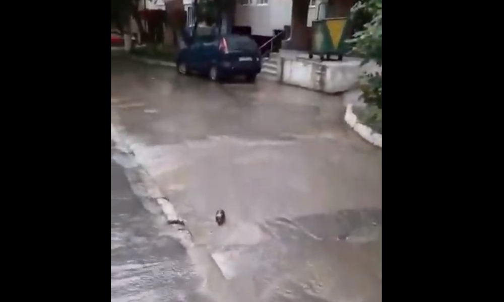 O curte de pe strada Petru Zadnipru din sectorul Ciocana al capitalei a fost practic inundată de apă.