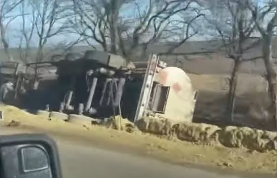 Accident pe un traseu din apropiere de raionul Vulcănești. O autocisternă plină cu combustibil s-a răsturnat într-un șanț de la marginea drumului.